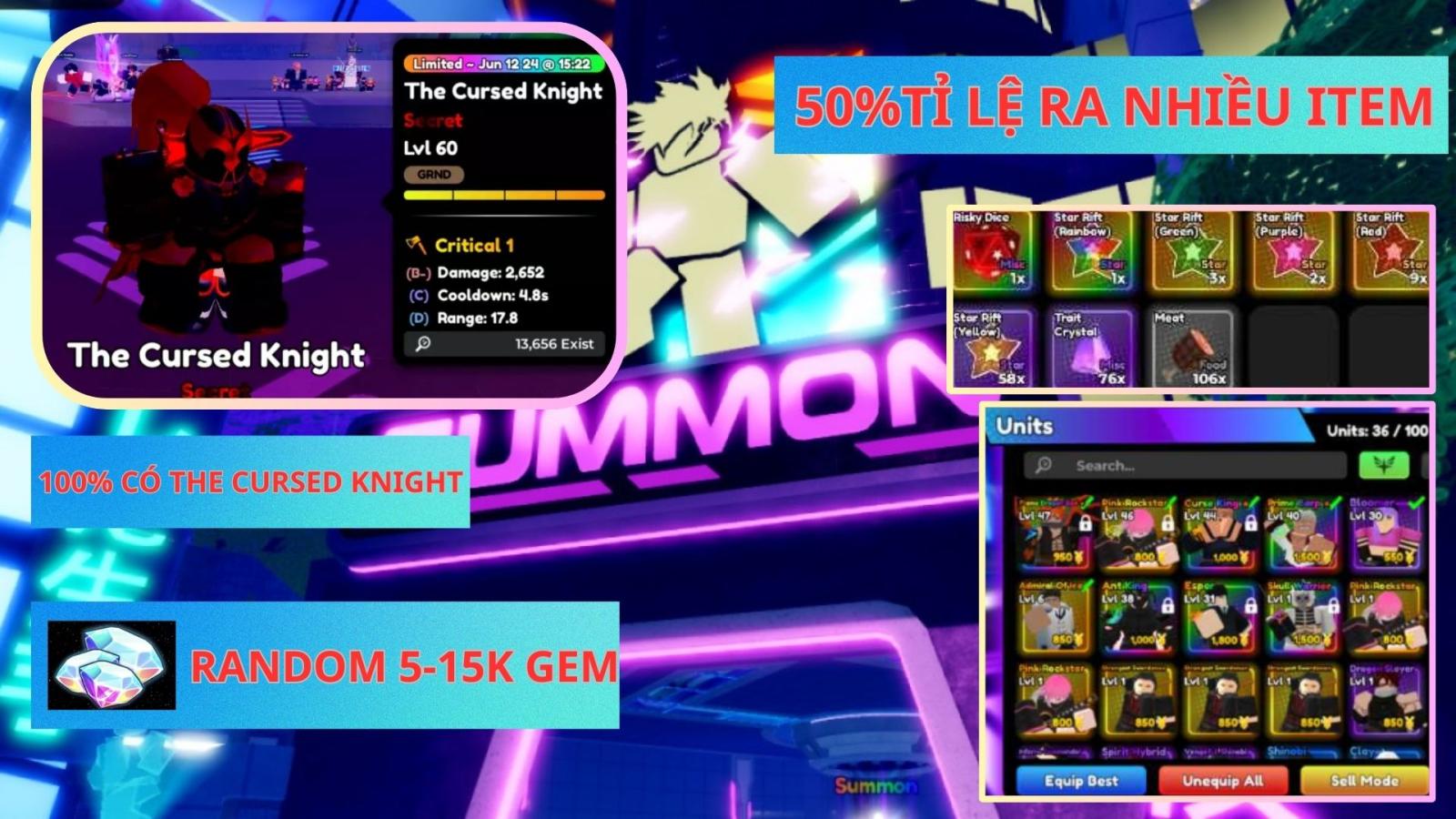 ACC 100% CÓ THE CURSED KNIGHT 1200K VÀ ITEM NGON